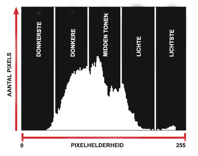 - Als beide zijden in histogram te hoog zijn verlies je in details