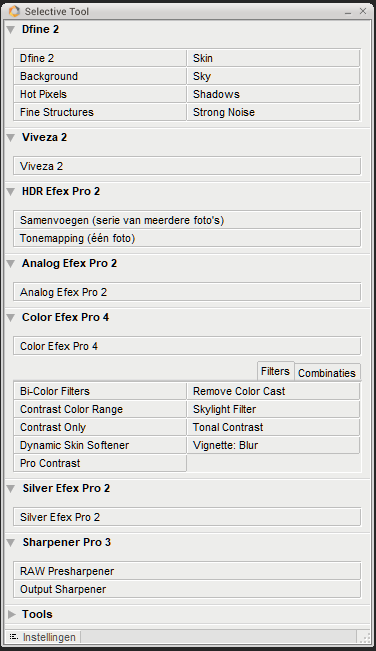 Vanuit PhotoShop kan je, als het geïnstalleerd staat, de diverse onderdelen van de NIK collection starten.