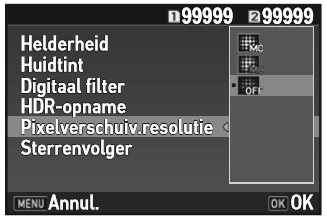 Stel dit in bij [Pixelverschuiv.resolutie] in menu