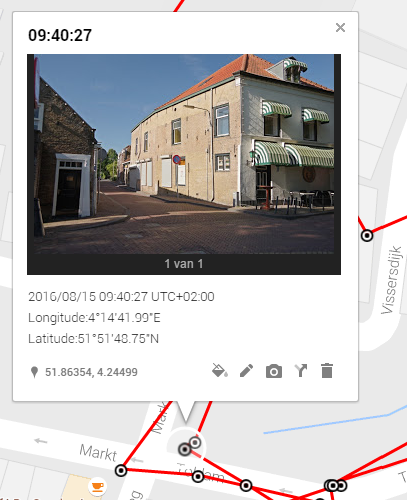 - Klik op één van de GPS punten op de plaats waar je een foto wilt toevoegen